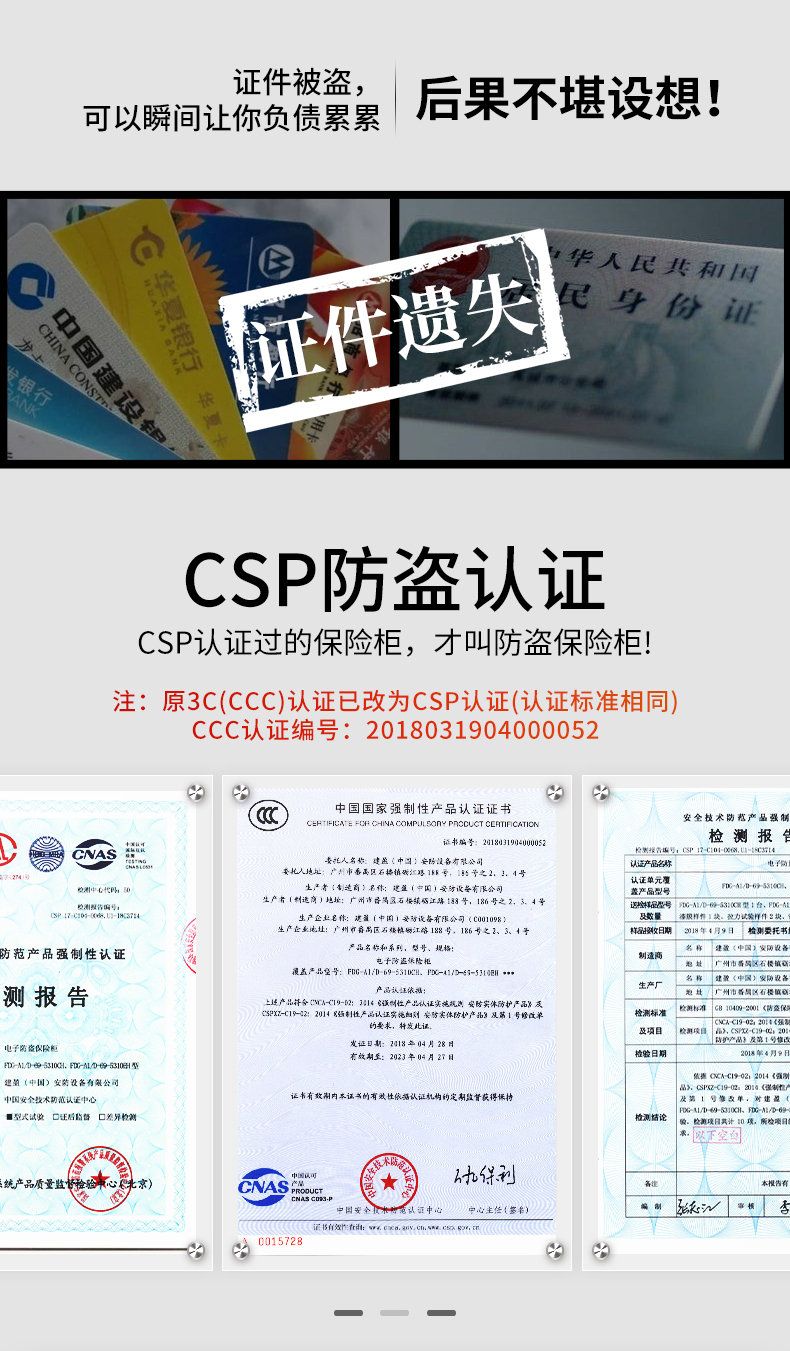 很多朋友喜歡把些貴重的東西放在家里,比如些珠寶飾啊,些房產(chǎn)證,現(xiàn)金等,如果沒有家用保險箱,這些東西隨便放在抽屜里或者柜子里是非常不安全的,近年來入室盜竊和失火的事件也不在少數(shù),定要防范于未然,而使用防火防盜雙重保險的保險柜就是保障家庭財產(chǎn)安全的種可靠手段。 下面就介紹一款防火防盜雙認證的保險柜——盾牌保險柜5310DC 1.防火 火災(zāi)的危害性大家都知道,所到之處沒有完整的,證件、金錢、重要文件一旦被燒毀,后續(xù)的補辦、賠償?shù)榷际切枰罅繒r間。但如果安置了防火保險柜,就不會有以上情況。盾牌5310DC通過了瑞士SGS防火認證。 2.防盜 文件丟失?錢財被盜?機密被偷?有的東西一旦被盜走丟失,就面臨著不可挽回的損失。而防盜保險箱是一種特殊的裝置,具有良好的保鮮裝置,能夠保證物品的安全性。隨著智能科技的發(fā)展,現(xiàn)在的保險箱無論是在技術(shù)還是防盜方面,都比以前有了很大提高。盾牌5310DC通過了CSP防盜認證(原3C認證),通過認證的保險柜才敢說防盜。 3.智能雙重警報 其一,如連續(xù)輸入錯誤的密碼就會觸發(fā)出警報系統(tǒng),出現(xiàn)警報鈴聲;其二,如果保險箱的箱體受到強烈的晃動,也會觸發(fā)警報系統(tǒng),從而發(fā)出警報鈴聲。 4.防撬 隱藏式微縫 保險箱門板采用隱藏式微縫設(shè)計,沒有撬點,緊密貼合,無縫隙,拒絕暴力撬開,讓賊人無從下手。 5.銀行金庫級門板與防盜實心鎖栓 保險柜門板采用了鋼板材料,門板總厚達62.5MM;總共有三側(cè)七栓無死角防盜實心鎖栓。在安全系數(shù)上又提高了一層。 如果您想要保護您珍視的一切,如果您家里還沒有購買防火防盜保險箱,那就趕快選擇吧,盾牌防火防盜保險箱的防火性高,防盜性強,使用它讓您安全感倍增! 重要提示: 1.第四十九屆中國(廣州)國際家具博覽會- 辦公家具展(2022.03.28-31) 2.盾牌保險柜展位號:S12.2A18 3.展會地址:廣交會展館 廣州.琶洲
