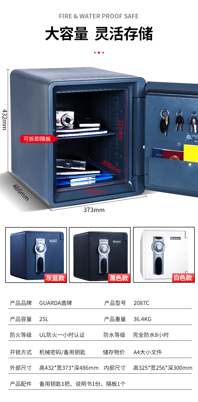 保險柜也是有分很多種類,作為保險柜它的主要作用既是保護好大家的財產(chǎn)安全,避免不必要的損失、安全。而防火保險柜則是可以保存重要文件所需要用的,對于財務(wù)與文件來說它的價值似乎并不是很高,但是能夠有效的讓你的文件能夠有個存放安放之地,不易丟失以及被大火損壞而減少不必要的麻煩。 畢竟,火災(zāi)是現(xiàn)代社會發(fā)生較為頻繁,危害較大的災(zāi)害,無論災(zāi)情的大小,多多少少都會造成損失,因此,提前安置防火保險柜,保護柜內(nèi)物品的安全真的很有必要,防患于未然總是沒錯的。 防火保險柜都是用來進行文件資料管理和重要物品包管的柜子,通過機械鎖、密碼鎖以及指紋鎖等保證物品的安全,具有一定防范能力,能在規(guī)定的工作時間內(nèi)抵抗破壞作用條件下非正常進入,也可以在有效時間內(nèi)保護大火的侵害。 而防火保險柜除了放置這些物品以外,還可以放置危險物品??梢哉f小孩子都是調(diào)皮活潑可愛的,而我們又不可能時時看著他們,這個時候我們把危險物品放到防火保險柜就可以完全解決后顧之憂;也可以存放隱私??梢哉f每個人都有不愿意讓別人接觸的隱私,把自己的隱私放到保險柜里面,可以很好地保存著不讓他人發(fā)現(xiàn)。 最重要的是,把以上這些物品放到防火保險柜里面,方便我們隨時拿取。不但省去了時間,還可以保護物品的安全,這樣的一款防火保險柜,怎么能說沒有必要呢?