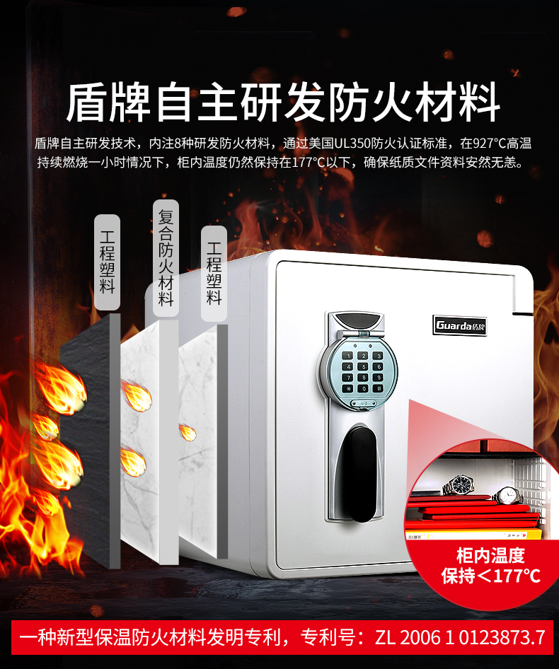經(jīng)??梢栽诹鱾鞯囊曨l中看到哪里又發(fā)生了重大火災(zāi),讓人們的財產(chǎn)受到威脅。這不禁讓眾多將貴重物品放在普通鎖柜的家庭暗自擔(dān)憂。這些擔(dān)憂是非常合理的,因為普通鎖柜在大火面前形同虛設(shè),根本防不住。而如果準(zhǔn)備一臺專業(yè)的防火保險柜,在一定時間內(nèi)保護(hù)柜內(nèi)物品的安全,家中的貴重物品也就安全了許多。 關(guān)于保險柜,相信大家多少還是有些了解的,不過大多停留在了模糊的記憶中。如今隨著技術(shù)的發(fā)展,保險柜的性能已經(jīng)得到了非常大的提升,它身上的變化自然也很多。比如防火保險柜。 家中的重要文件。如契約、合同、出生證、房產(chǎn)證。還有存折、紀(jì)念幣、古董、首飾等貴重物品的收藏。想要在外出時也能給家中財物提供一個安全的保護(hù),防火保險柜的重要性不言而喻。 盾牌防火防水保險柜的出現(xiàn),對中國保險柜行業(yè)來說,是一匹黑馬。國內(nèi)的防火保險柜市場主要采用隔熱原理,利用鐵皮鋼材水泥來阻擋火勢,然而熱傳導(dǎo)原理仍會不可避免地讓熱量融入柜內(nèi),甚至熔化。而盾牌所采用的新型環(huán)保防火物料,具有很強的熱容量,采用吸熱原理來達(dá)到防火效果。因此,盾牌依靠高端科技,應(yīng)用新型材料,防火技術(shù)遠(yuǎn)超國內(nèi)同行二十年。 盾牌防火保險箱的投入使用,給貴重物品帶來了堅實的安全保障,不管是保險箱的質(zhì)量,還是它的安全性防火性,都非常值得信賴,用來保護(hù)貴重物品財物的安全是再適合不過的了。
