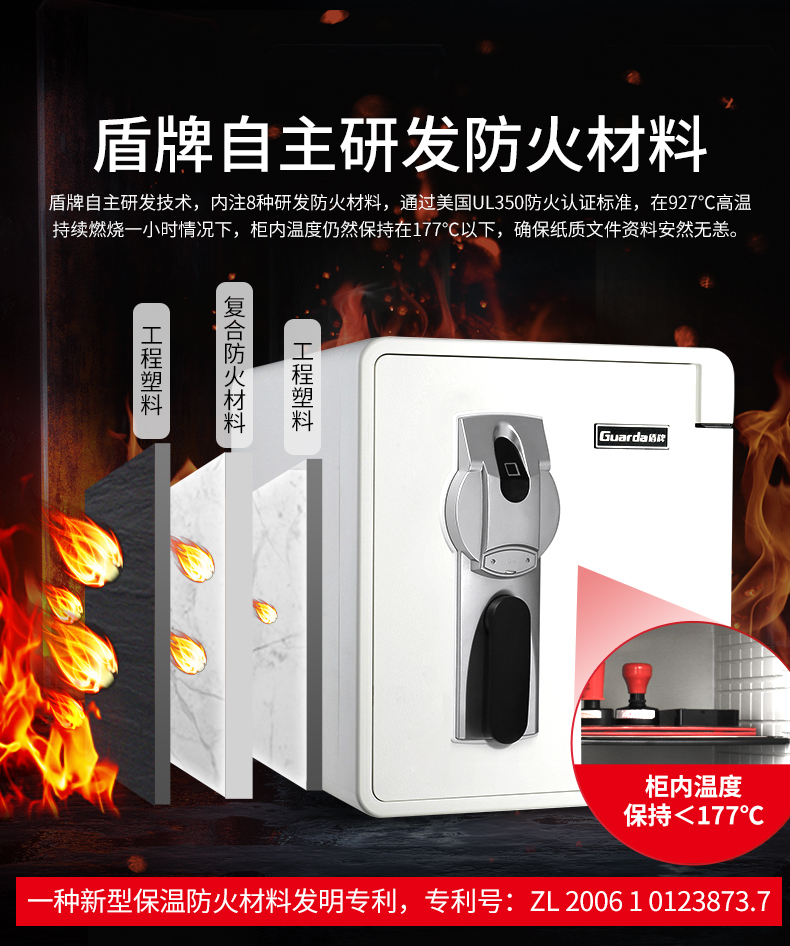 針對每一個需要保存重要文件的人,包括老年人、中年人以及年輕人,有了一臺防火保險柜,我們每個人就會養(yǎng)成合理、安全、高效放置重要文件用品的習(xí)慣了。 畢竟,我們每個人都應(yīng)該有想找一個東西,但是怎么也找不到的苦逼經(jīng)歷吧,結(jié)果把家里翻箱倒海、搞得像垃圾堆一樣才終于找到,如果找不到了,還要浪費(fèi)很多時間去補(bǔ)證補(bǔ)卡。如果我們在平時就有把這些貴重物品存放到保險柜的習(xí)慣,還用這么辛苦嗎?合同、地契、畢業(yè)證等重要的文件。存放這類紙質(zhì)物品選擇防水、防火的保險柜。 不知道大家知不知道2009年的武漢漢正街火災(zāi),雖然這場大火對有形財產(chǎn)的破壞驚人,但焚毀的收款憑證、商務(wù)契約、技術(shù)問價等無形財產(chǎn)的損失,遠(yuǎn)遠(yuǎn)超過有形財產(chǎn),由于后續(xù)的補(bǔ)辦手續(xù)、契約重訂、法律訴訟等所需的時間、人力、財力根本無法統(tǒng)計,所以這個損失是不可估量的。但如果有了一臺防火保險柜呢?可能就不會有這樣的事情發(fā)生了。 而盾牌所采用的新型環(huán)保防火物料,具有很強(qiáng)的熱容量,采用吸熱原理來達(dá)到防火效果。因此,盾牌依靠高端科技,應(yīng)用新型材料,防火技術(shù)遠(yuǎn)超國內(nèi)同行二十年。 總之,您視如珍寶的物品,讓家用防火保險箱為其護(hù)航,盾牌防火保險箱不管是從結(jié)構(gòu)設(shè)計上還是從防火功能上都堪稱是經(jīng)典之作,安全性高防火性強(qiáng),使用盾牌家用防火保險箱給您的家?guī)韴詫?shí)的安全保障,您值得擁有!