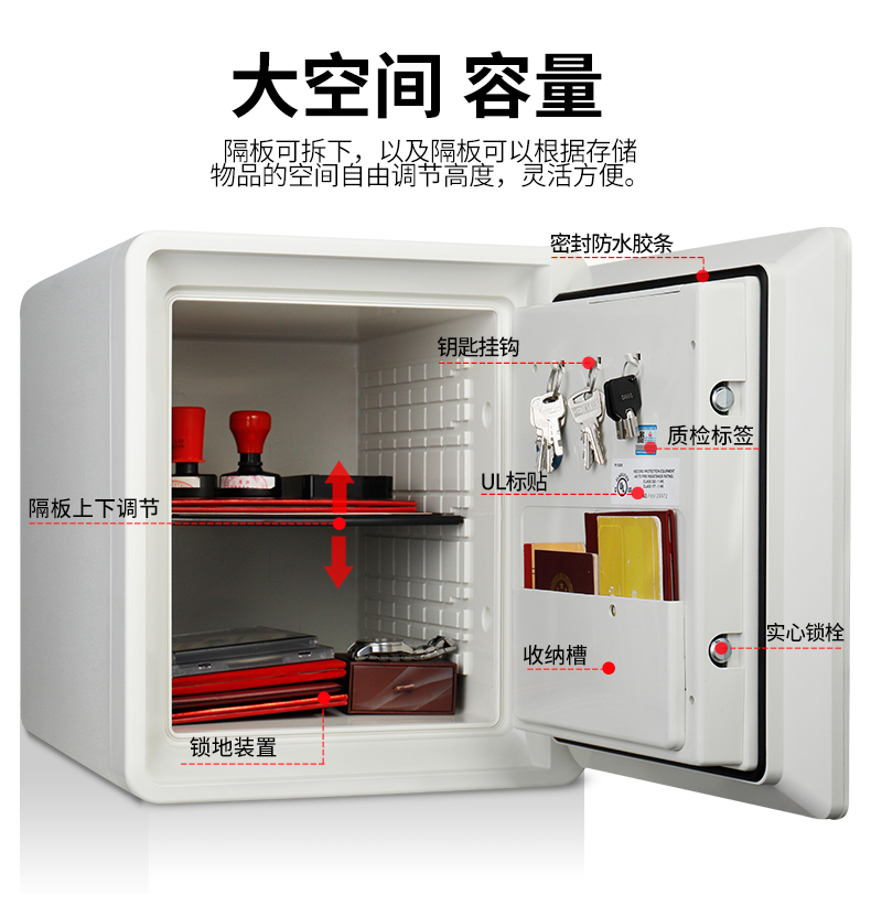 貴重物品,比如房產(chǎn)證、證券憑證、合同、文件、古董字畫、紀(jì)念物、數(shù)碼產(chǎn)品等等。即要能存放得安全保密,又要在需要的時候隨時取出來,還要保證物品的質(zhì)地完好。 有些人可能會考慮放在家里的床墊下、衣柜里、家具夾縫中或其他隱秘的角落,但是當(dāng)您不在家的時候,您肯定會擔(dān)心被偷或者失火。買個防火保險柜容積足夠容納,也可以儲存體積較大的物品,又便于隨時的查看和存取,安全又方便。 因?yàn)椋?strong>防火保險柜讓家里的財(cái)產(chǎn)和重要材料更多一層保障,很多年輕人都應(yīng)該培養(yǎng)這種防患于未然的意識。畢竟火災(zāi)是現(xiàn)代社會危害較大,發(fā)生較為頻繁的災(zāi)害,一旦發(fā)生火災(zāi),后果將不堪設(shè)想。 在國外,每個家庭平均擁有2.3臺家用防火保險箱,而盾牌正是想把這種安全理念帶入到中國的普通家庭中,以其高品質(zhì)的防火性能來守護(hù)家庭財(cái)產(chǎn)安全。盾牌保險柜采用的是具有專利的自主研發(fā)的新型環(huán)保防火材料,但在大力提升防火性能的同時,為了更好的迎合現(xiàn)代消費(fèi)者對于外觀設(shè)計(jì)的追求,將防火保險箱的安全和家居美觀融合一體,更貼近人性的設(shè)計(jì),為消費(fèi)者打造一個安全舒心的生活環(huán)境。 總之,一臺安全防火、性能高的盾牌防火保險箱不僅可以成為家庭安全的守護(hù)神,還能成為幸福家庭的生活點(diǎn)精品,可安全存儲物品,又能隨時拿取。