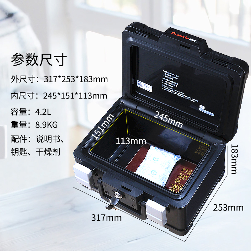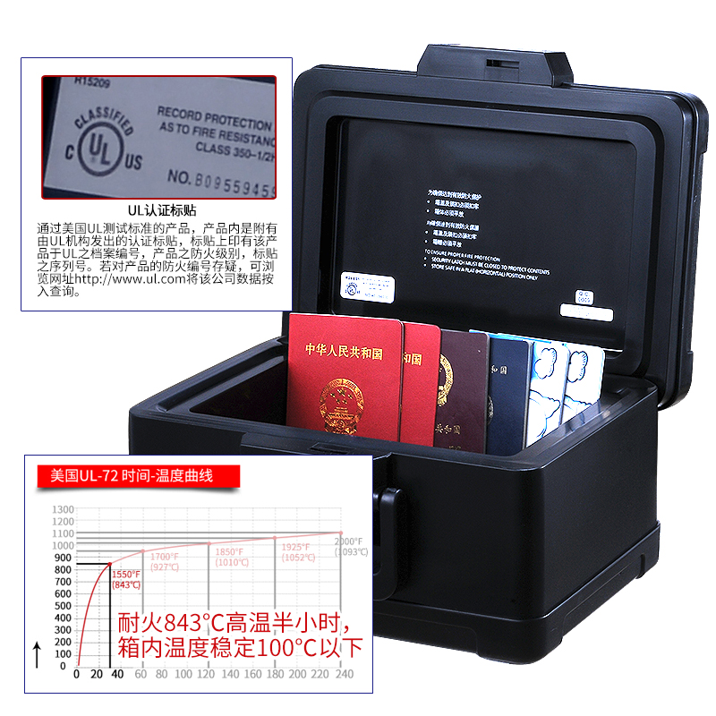 盾牌尊尚系列,外觀采用全鋼板外殼設(shè)計,給人簡約干練的主觀感受,同時耐繡、耐磨,使用壽命長;防水槽采用全密封設(shè)計,暢達(dá)8小時長效防水;內(nèi)注自主研發(fā)的復(fù)合防火物料,從室溫開始于120分鐘內(nèi),柜外溫度達(dá)1010℃時,柜內(nèi)溫度仍保持在177℃以下,有效保護(hù)箱內(nèi)的紙質(zhì)及其它有價值物件;升級鎖地設(shè)計,可鎖地、入墻、入柜等。